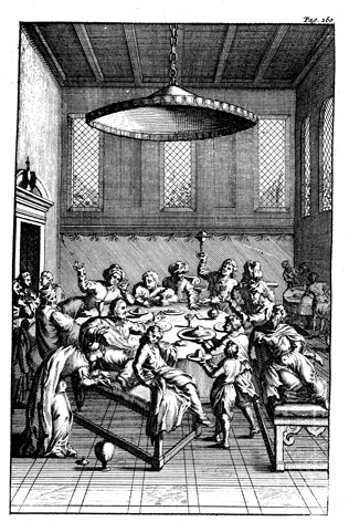 Description: A depiction of Luke 7:36-50 in which Jesus dines with a Pharisee while a sinful woman washes and anoints Jesus’ feet. This artist presents Jesus following the Roman custom to feast while reclining rather than sitting argued for by philologist and physician Girolamo Mercuriale (1530-1606) in his publication “De Arte Gymnastica” (Venice, 1569).