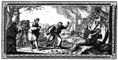Description: Job sits in the ashes with the devil behind him as his friends try to comfort him.