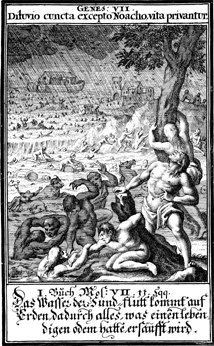 Description: The ark protects those inside (background), while others try to escape the rising floodwaters.