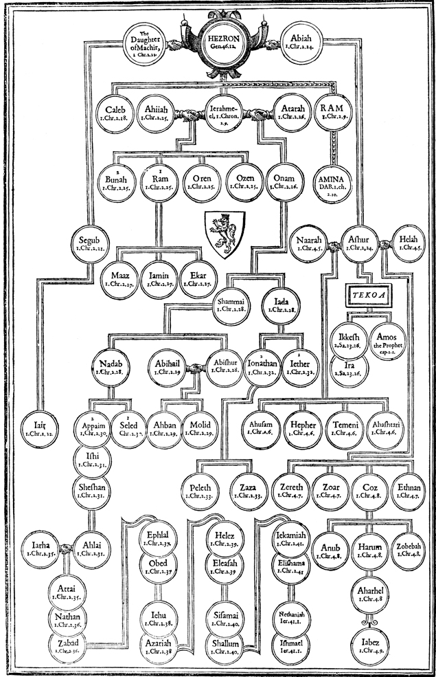 Description: Family tree of Hezron, son of Perez, son of Judah, fourth tribe of Israel.