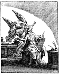 Description: St. Matthew with his attribute, the angel, nearby. Engraved by John Sturt (1658–1730).