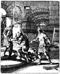 Description: John the Baptist is beheaded and his head placed on a platter. Engraved by John Sturt (1658–1730).