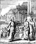Description: Jesus is questioned about paying taxes to Caesar by the Pharisees and Herodians. Engraved by John Sturt (1658–1730).