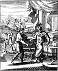 Description: The master returns from his journey and takes an accounting of his money; the one who buried the talent retrieves it with a shovel. Engraved by John Sturt (1658–1730).
