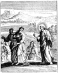 Description: Jesus commissions the twelve apostles and sends them out with instructions. Engraved by John Sturt (1658–1730).