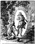 Description: Jesus appears to Mary Magdalene following his resurrection. Engraved by John Sturt (1658–1730).