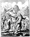 Description: Jesus calls disciples to take up their crosses and follow him. Engraved by John Sturt (1658–1730).