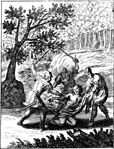 Description: A group of robbers beat and strip a traveler of this clothes. Engraved by John Sturt (1658–1730).