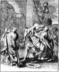 Description: Joseph of Arimathea has Jesus' body taken down from the cross. Engraved by John Sturt (1658–1730).