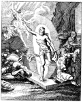 Description: Jesus is raised from the dead. Engraved by John Sturt (1658–1730).