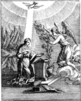 Description: The angel Gabriel visits Mary and announces that she will give birth to Jesus. Engraved by John Sturt (1658–1730).