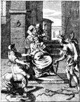 Description: Jesus is mocked as a crown of thorns is placed on his head. Engraved by John Sturt (1658–1730).