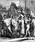 Description: Peter delivers a sermon on Pentecost. Engraved by John Sturt (1658–1730).