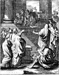 Description: The Jews respond to Peter's sermon on Pentecost. Engraved by John Sturt (1658–1730).