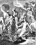 Description: Garments are placed at Saul's feet as Stephen is stoned. Engraved by John Sturt (1658–1730).