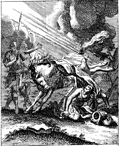 Description: Jesus confronts Saul on the road to Damascus. Engraved by John Sturt (1658–1730).