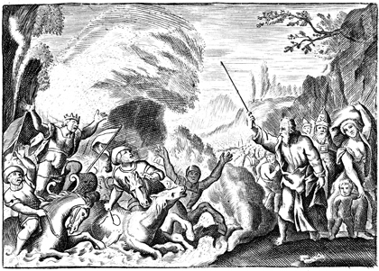 Description: As Moses and Israel stand safely on the shore, Pharaoh's army is drowned in the Red (Reed) Sea.