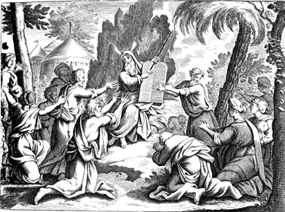 Description: Moses reveals to the people the second set of tablets with the Ten Commandments.