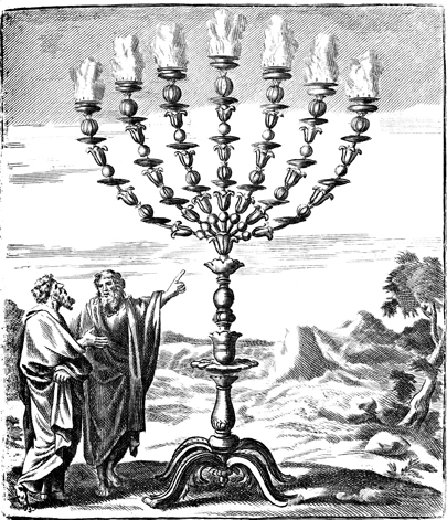 Description: Lampstand with branches and seven bowls made to look like almond blossoms.