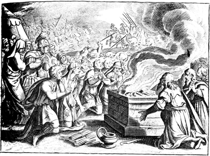 Description: The Israelites defeat the Philistines in battle at Mizpah, as Samuel offers a sacrifice to God.