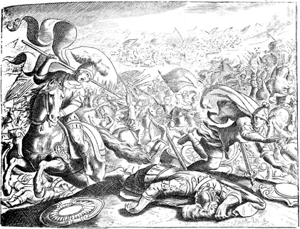 Description: Saul falls on his sword so as not to be taken prisoner by the Philistine army.