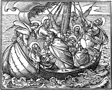 Description: Jesus sleeps in the boat during a storm.