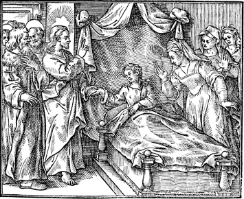 Description: Jesus raises Jairus' daughter from the dead.