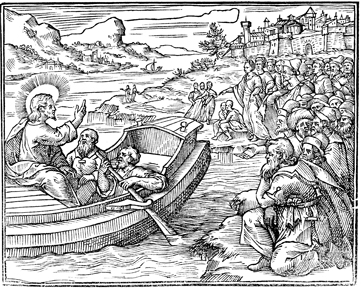 Description: Jesus teaches the crowd from a boat.