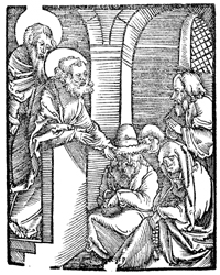 Description: Peter and Paul are depicted delivering a sermon to a group of beggars.