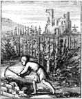 Description: A laborer works in the vineyard as an illustration of Isaiah's song of the vineyard.