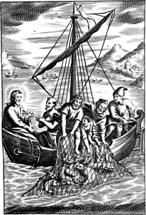 Description: The disciples catch a large number of fish, causing Peter to repent.