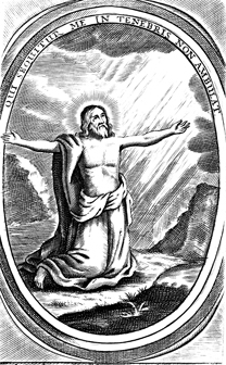 Description: Jesus lifts his hands in prayer.