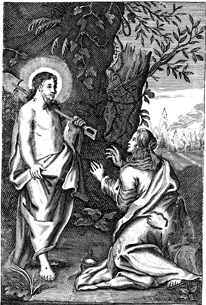 Description: Jesus appears to Mary Magdalene as the gardener.