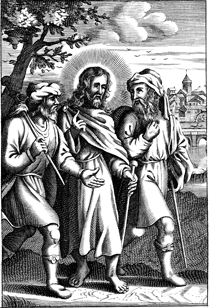Description: Jesus converses with Cleopas and another disciple on the road to Emmaus.