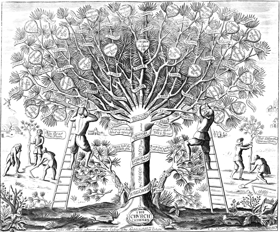 Description: A rendering of the spread of the Catholic Church in the form of a tree from Jesus Christ.
