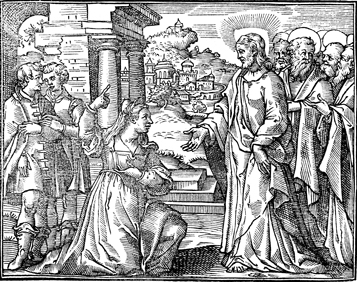 Description: James's and John's mother asks Jesus to allow her sons to sit one on his left and the other on his right in his glory.
