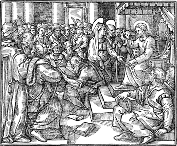 Description: Mary and Joseph find the twelve-year-old Jesus in the temple, sitting among the teachers, listening and asking questions.