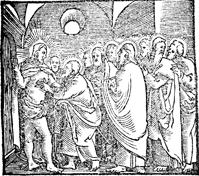 Description: Jesus invites his disciple Thomas to examine his wounds so that Thomas might believe that Jesus has risen from the dead.