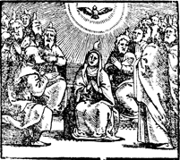 Description: At Pentecost the Holy Spirit descends on Jesus’ disciples, who are gathered around Mary.