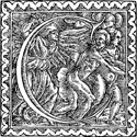Description: An initial letter C with Adam and Eve being driven out of the Garden of Eden.