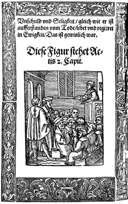 Description: An image depicting the preaching that took place on the day of Pentecost.