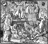 Description: Upon the opening of the sixth seal, there was a great earthquake, the sun turned black, the moon turned to blood, and the stars fell from the heavens.