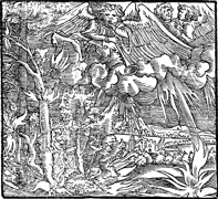 Description: An angel sounds the first trumpet, bringing hail mixed with fire and blood upon the earth.