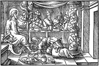 Description: Jesus is anointed by a sinful woman in the house of Simon the Pharisee.