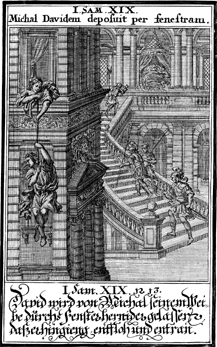 Description: Michal lowers David through a window, while Saul’s guards attempt to kill him in his sleep.