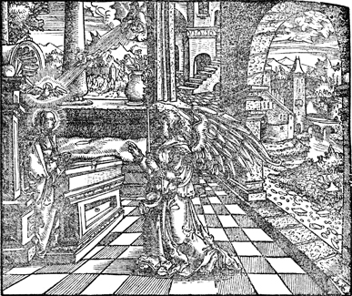 Description: The angel Gabriel visits Mary and announces that she will give birth to Jesus.