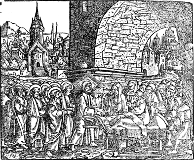 Description: Jesus raises a widow's son, as the funeral procession leaves the city.