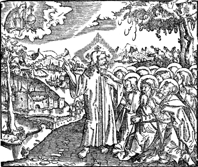 Description: Pointing to the Father, Jesus tells his disciples of the Helper that will come after his departure.