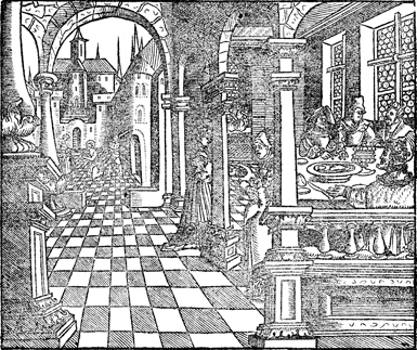 Description: Herod gives a banquet, while outside in the courtyard John the Baptist is beheaded.