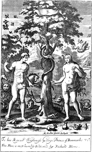 Description: The serpent watches closely, as Adam appears to remind Eve of God’s words concerning the forbidden fruit that she holds in her hand. As the numeral at the head of the page indicates, this is plate #3 in a series of illustrations, and the engraver, Michael van der Gucht (1660-1725), is responsible for the work.